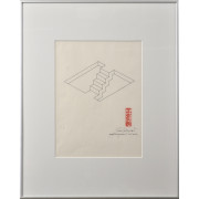 Oscar Reutersvärd (A3457) Oscar Reutersvärd (1915-2002), tuschteckning på japanpapper, signerad, betitlad ”Perspective japonaise no 315 mceh”, ca 20 x 19 cm (50 x 40). Syrafri inramning. Pris 1800