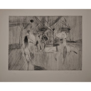 Etsning av Ulf Trotzig (1925-2013), signerad och daterad 1955. Plåtens mått är 29 x 35 cm, oramad (bladet större). Verket har titeln ”Skogsinteriör med figurer” och är hämtat ur Föreningen För Grafisk Konsts årsmapp 1957. Litteratur: Sandström nr 15.