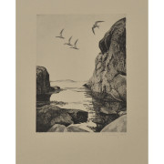 Stig Åsberg (B3366) Stig Åsberg (1909-1968), etsning, signerad, daterad 1959, 24,5 x 17,8 cm, oramad (bladet större). Verket har titeln ”Havsvik” och är hämtat ur Föreningen För Grafisk Konsts årsmapp 1960. Pris 350