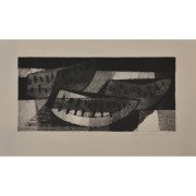 Göran Nilsson (B3370) Göran Nilsson (1930-2014), akvatint, signerad och daterad 1957, 18 x 36,6 cm, oramad (bladet större). Verket har titeln ”Melonklyftor” och är hämtat ur Föreningen För Grafisk Konsts årsmapp 1959. Pris 250