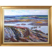 Johannes Ravn (A2753) Johannes Ravn (1922-1991), olja på duk, signerad, daterad -85, 55 x 75 (68 x 88,5). Pris 2500