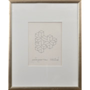 Oscar Reutersvärd (A3344) Oscar Reutersvärd (1915-2002), tuschteckning på japanpapper, signerad, betitlad ”Perspective japonaise no 426 aa”, ca 19 x 17 cm (53 x 43,5). Syrafri inramning. Pris 1800