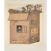 Bengt Böckman (1923-2014), färglitografi, signerad, numrerad 58/333, 50 x 41 cm (65 x 51). Verket har titeln ”En låda till Leger” och trycktes 1975. Litteratur: Grafik 1965-1995, s. 38. Oramad, gulnad, foxing, övre marginal med pappersförlust efter tidigare inramning.