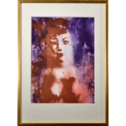 Peter Dahl (A2734) Peter Dahl (1934-), färglitografi, osignerad, bladet med stämpel "Originallitografi av Peter Dahl 1987 galerie AIX" a tergo, betitlad ”Dam”, 29,5 x 22 cm (43,5 x 31,5). Ramnötningar. Pris 500