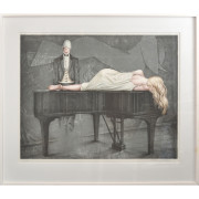 Bert Johnny Nilsson (1934-), färglitografi, signerad, numrerad 63/222, 56 x 75 cm (78 x 95,5). Litet löst smolk innanför glas.