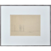 Gunnar Norrman (A3118) Gunnar Norrman (1912-2005), litografi, signerad, daterad 1949, numrerad 18/110, betitlad "Vinterdag på slätten", 20 x 29 cm (41,5 x 51). Syrafri inramning, ram med bruksslitage, ett löst smolk innanför glaset. Pris 1200