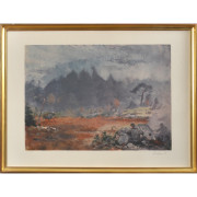 Lindorm Liljefors (1909-1985), litografi, signerad, numrerad 203/360, 41 x 49,5 cm, (50 x 67,5). Verket har titeln "Älgar på ståndet" och ingick som blad nr 4 i mappen "Lindorm Liljefors I" tryckt i 360 exemplar samt HC-upplaga om 40 exemplar och en EA-upplaga om 20 exemplar. Litografierna trycktes hos Atelier Gourdon, Paris under åren 1976-1977.