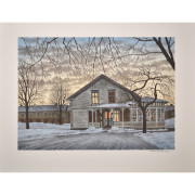 Reinhold Ljunggren (B3293) Reinhold Ljunggren (1920-2006), färglitografi, signerad, numrerad i upplaga om 310 exemplar, betitlad ”Det gamla hotellet, Värnamo”, 31,5 x 43,5 cm, oramad (bladet större). Pris 500