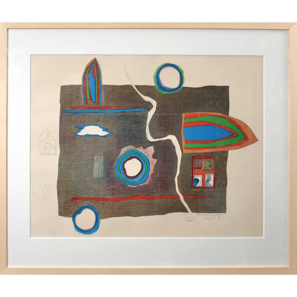 Felix Hatz (A728) Felix Hatz (1904-2000), färglitografi, signerad, numrerad 139/150, 50 x 73 cm (74 x 93). Kraftig lådram. Pris 1200