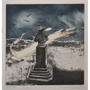 Micheal Farrell (B807) Micheal Farrell (1940-2000), akvatint, signerad, betitlad ”Auvers sur oise (Daubigny)”, numrerad 62/80, 36 x 35 cm (41 x 39). Oramad. Pris 800