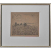 Stig Borglind (A930) Stig Borglind (1892-1965), torrnål, betitlad ”Månuppgång”, signerad, daterad 1942, 21,5 x 25,5 cm (40 x 48). Syrafri inramning. Pris 1500
